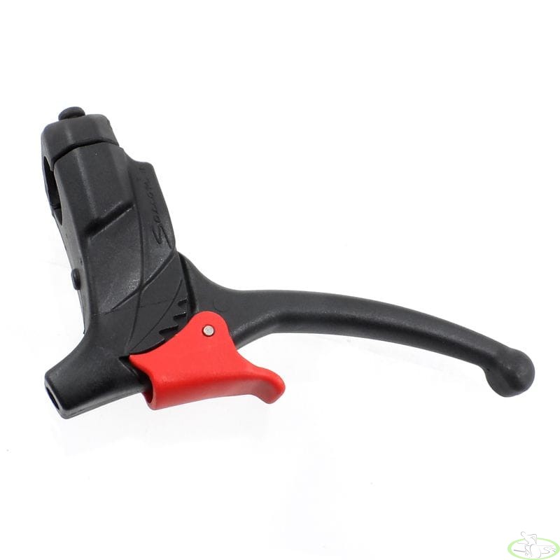 Dźwignia hamulca na jedną linkę, z blokadą, na rurę ok. 25mm, uniwersalna - prawa lub lewa. Posiada trzypozycyjną blokadę zaciśnięcia hamulca.