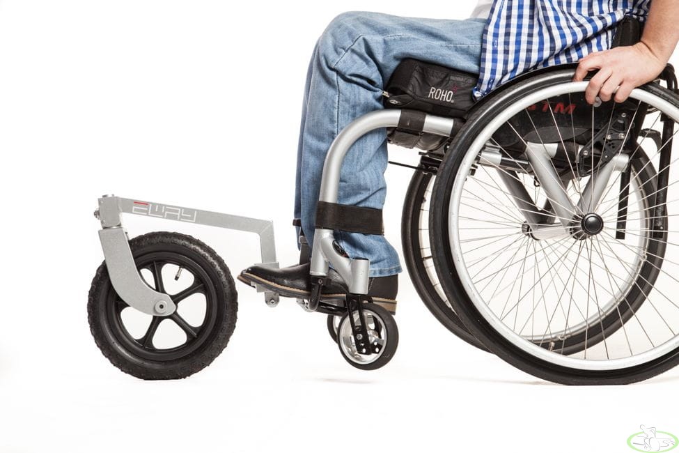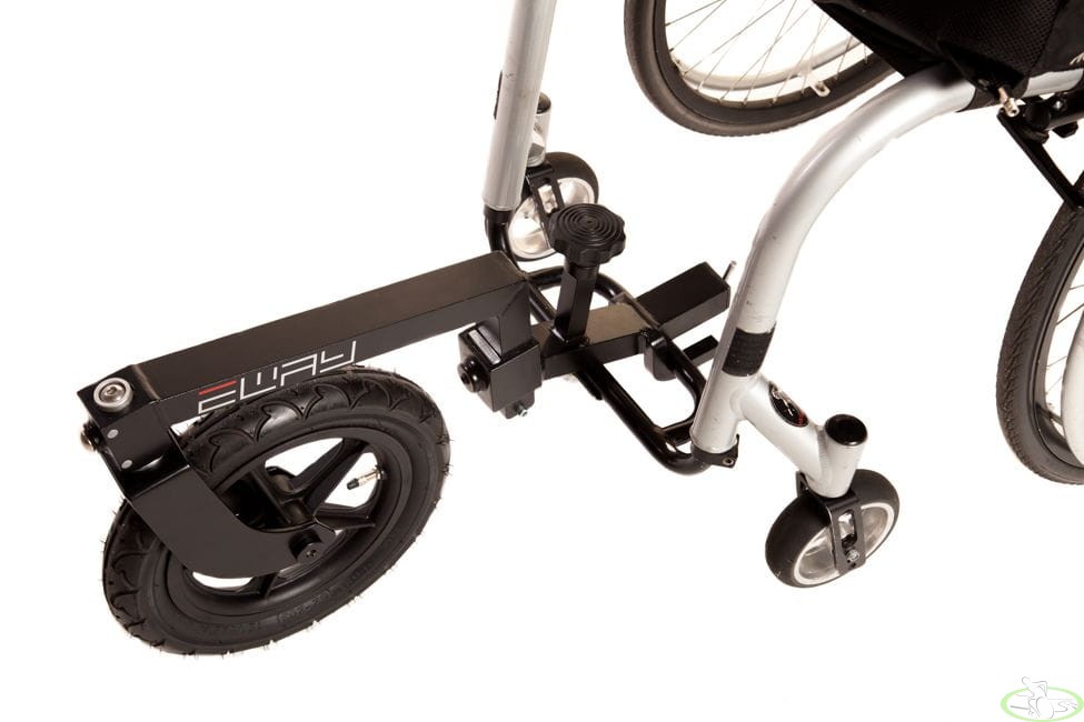 Przystawka EWAY to urządzenie, dzięki któremu można wyeliminować uciążliwe zapadanie się małych, przednich kółek wózka inwalidzkiego w grząską powierzchnię gruntu poprzez ich podniesienie.